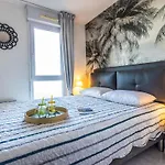 The beachfront 37 m^2 Apartment Les Colonnes De Circe By Interhome is around a 20-minute walk from La Baie des Pirates and provides spa facilities such as a Jacuzzi. Casino Barriere is at a distance of 2.5 km from the 1-bedroom apartment, while Les Ondines bus station is a minute away from the property.